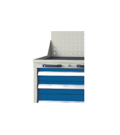 如工具柜頂部需放置小型工具或零件,可選配頂柜,頂框的材料為2mm冷軋鋼板,四周折邊高度為25mm,配黑色帶條紋防油膠墊。